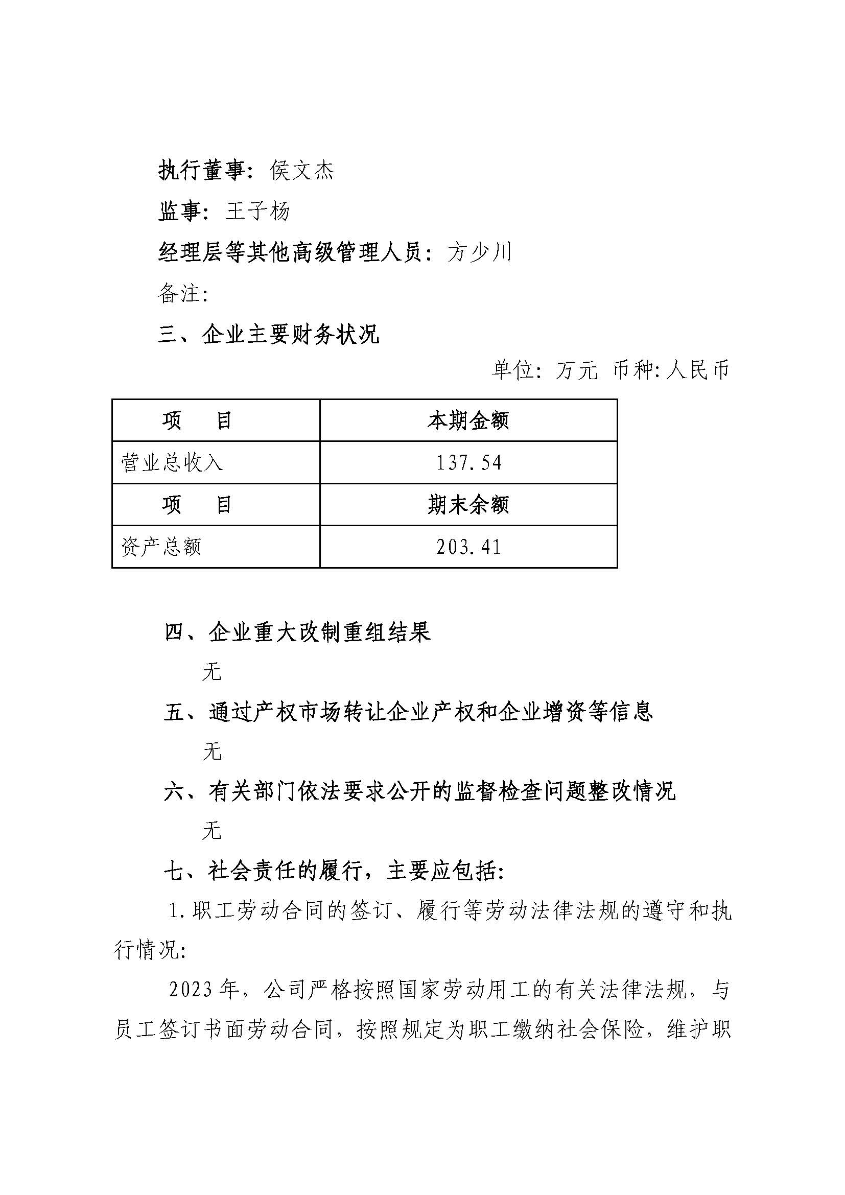 厦门市好运八方商贸有限公司2023年度重大信息公告